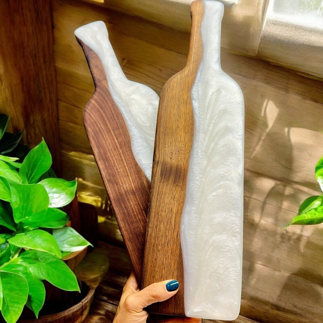 Handle gently and avoid cutting directly on the resin to prevent scratches. For best results, cut on the back side of the board and serve on the front.